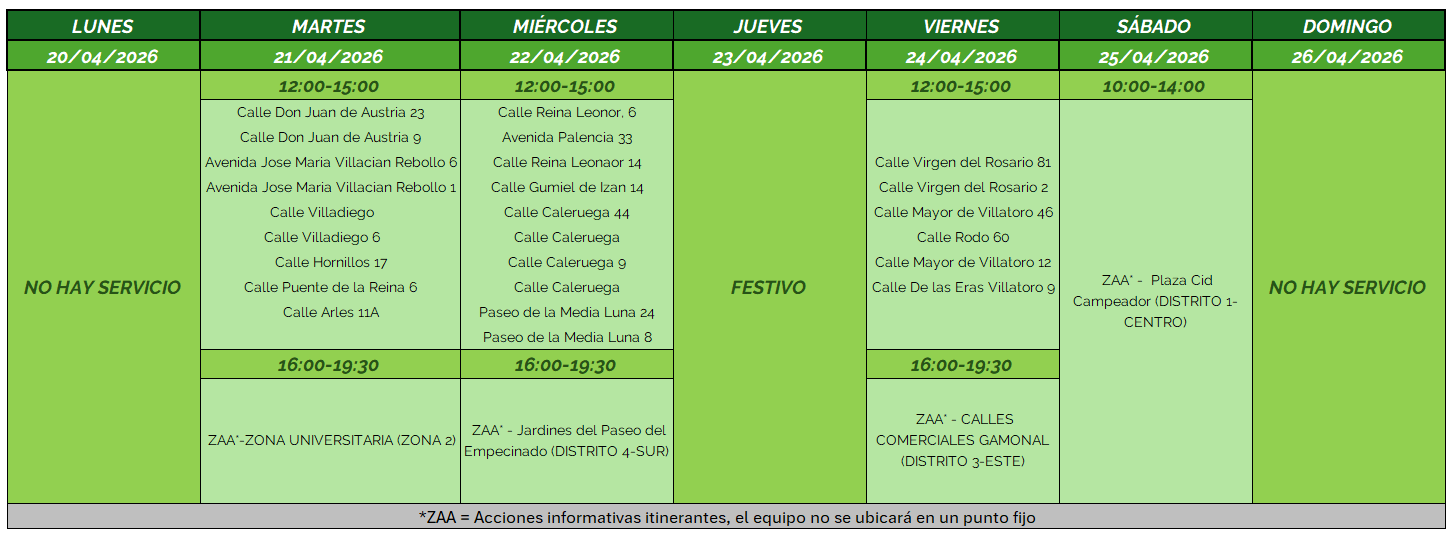 Desde el 9 de abril hasta el 2 de julio estaremos por las calles de la ciudad con nuestro equipo de educación ambiental atendiendo a las consultas de la ciudadanía.
